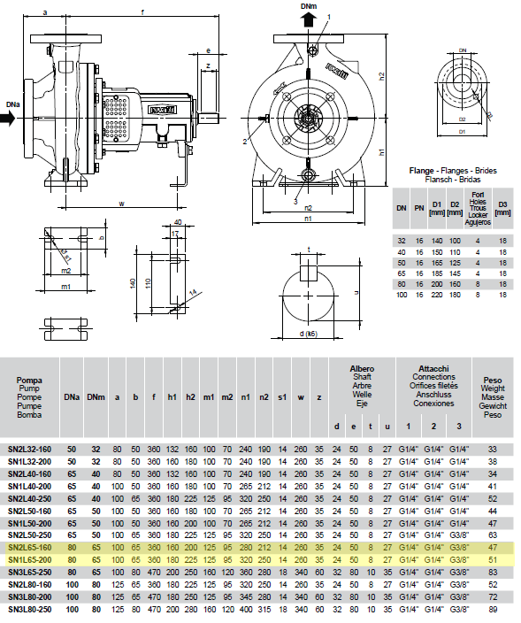 Μονοβάθμια Φυγοκεντρική Αντλία ROVATTI SN2L65-160 E (2900RPM)